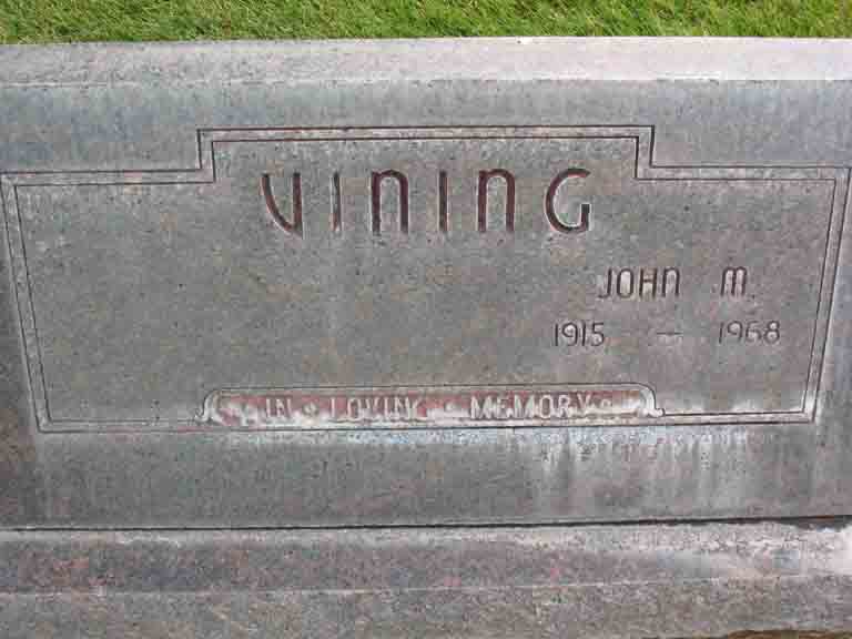 Gravestone for John Marcus Vining, in Canyon Hill Cemetery, Caldwell, Canyon County, Idaho (from Find A Grave):
