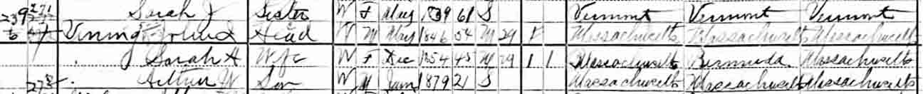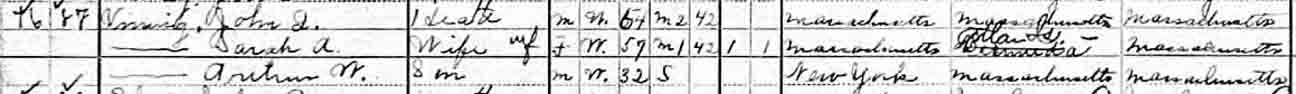 | Arthur W. Vining | ? | 1 | ? | 21 | 32 | married and living in separate household |
