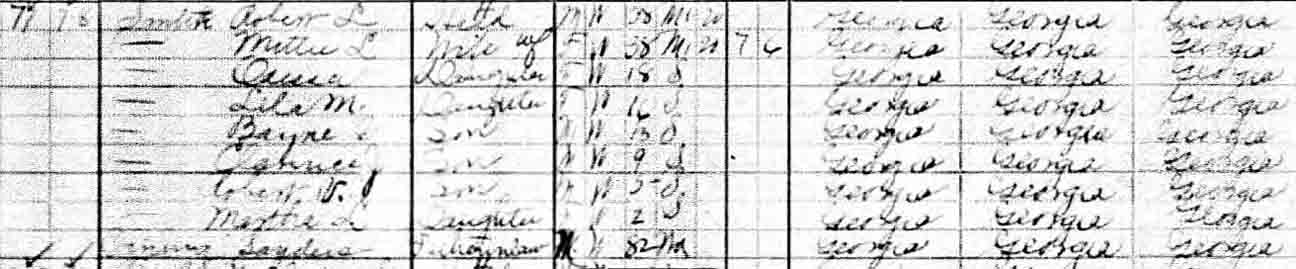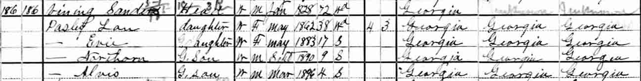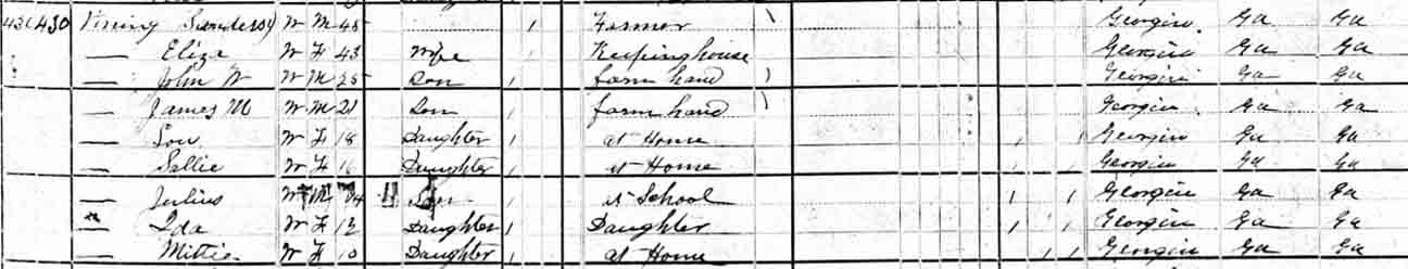 | Mittie Lee Vining | 10 | ? | married and living in separate household | 38 [see note below] |