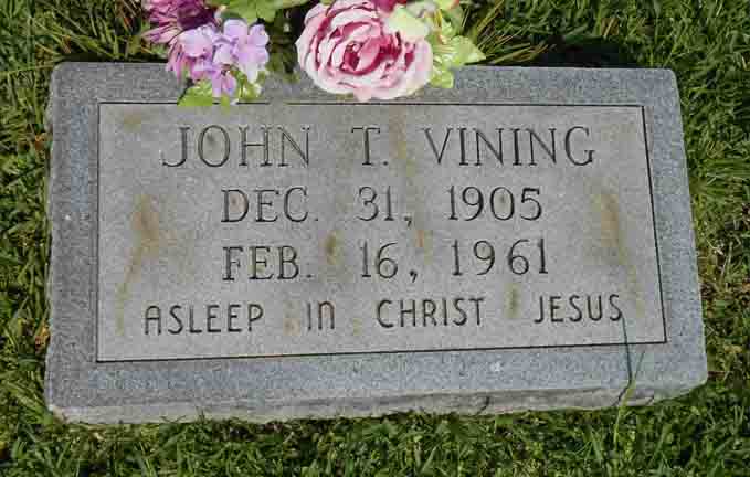 Gravestones for John Tillman Vining and Essie Mae (Morris) Vining, in Mulberry Street Cemetery, Amite, Tangipahoa Parish, Louisiana (from Find A Grave):