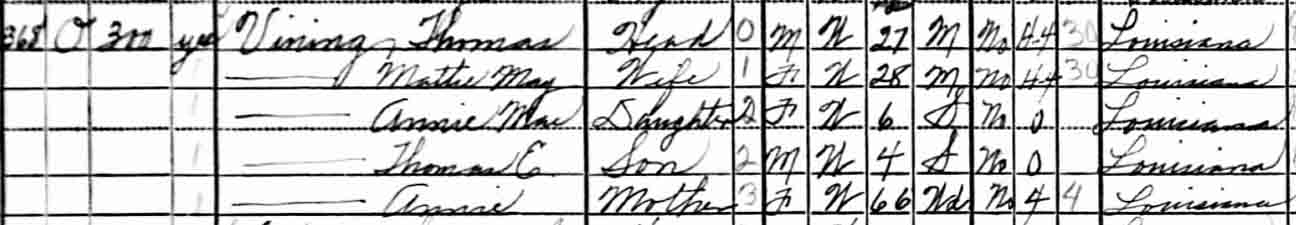 | Lelia Alma Vining | 9 | 19 | living in separate household | ||