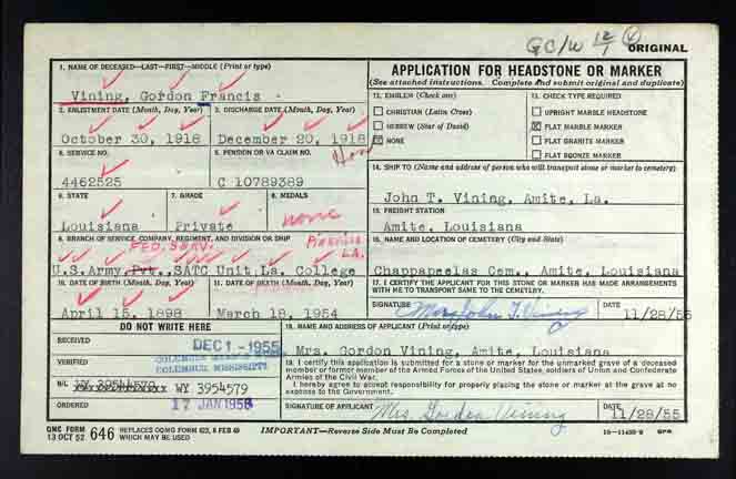 | James Gordon Vining | 2 | 12 | 21 | married and living in separate household | |