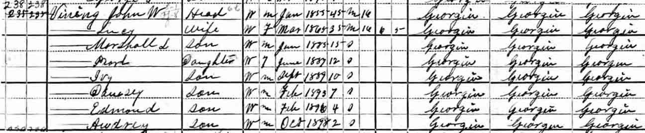| Marshall Lee Vining | ? | 15 | married and living in separate household | |||