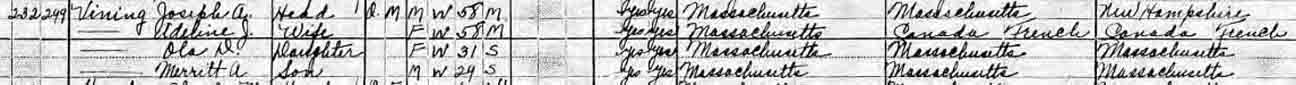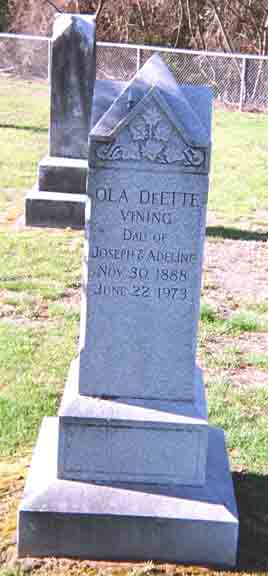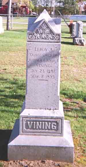 Monument sides for Leroy Allen Vining and Ola DeEtte Vining, children of Joseph Allen Vining and Adeline Jane (Baker) Vining, in North Hatfield Cemetery, North Hatfield, Hampshire County, Massachusetts (from Find A Grave):
