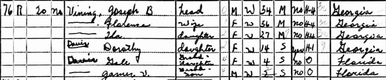 | Ila Doris Vining | 8 | 18 | [living? in separate household] | |