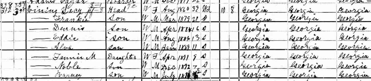 | Fannie Mae Vining | 9 | [living? in separate household] | ||||