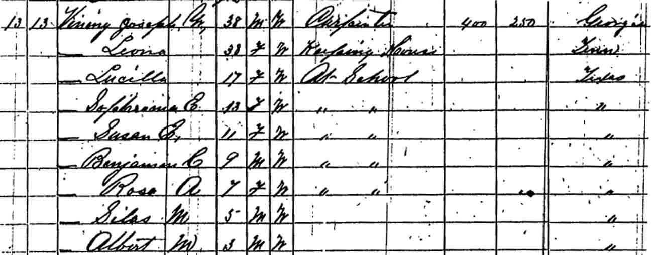 | Lucilla Vining | 7 | 17 | not living in this household | |||