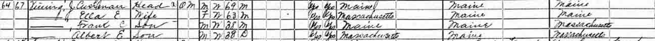 | Albert E. Vining | | ? | 19 | ? | 38 | 49 | 59 |