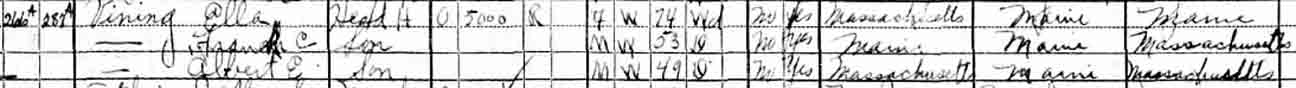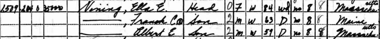 | Ella E. (…) Vining | 24 | ? | 44 | ? | 63 | 74 | 84 |