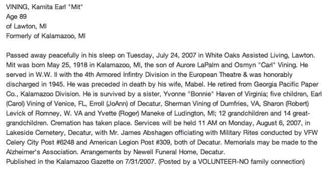 ← Back to Kamita Earl Vining - (1) Elizabeth Volenski; (2) Mabel Dailey