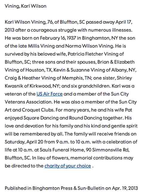 Documentation for Karl Wilson Vining - Patricia Fletcher