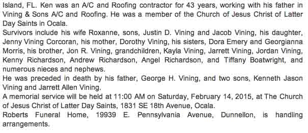 Obituary for Kenneth David Vining: