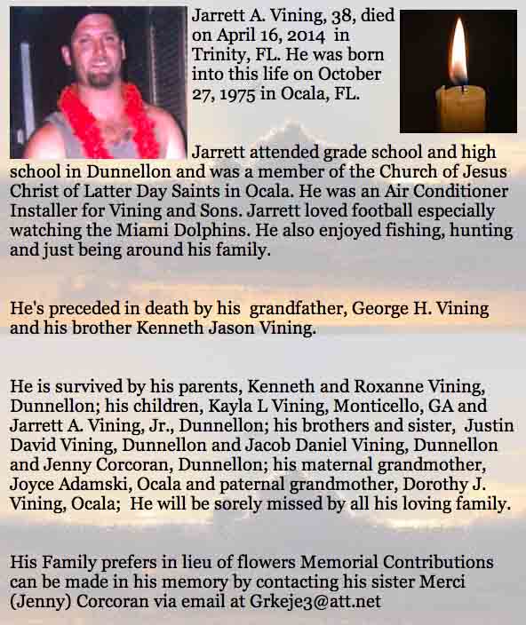 Obituary for Jarrett Allen Vining, son of Kenneth David Vining and Roxanne ([…]) Vining: