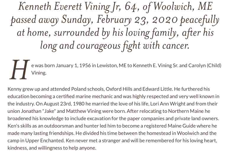 Obituary for Kenneth Everett Vining Jr.: