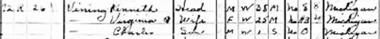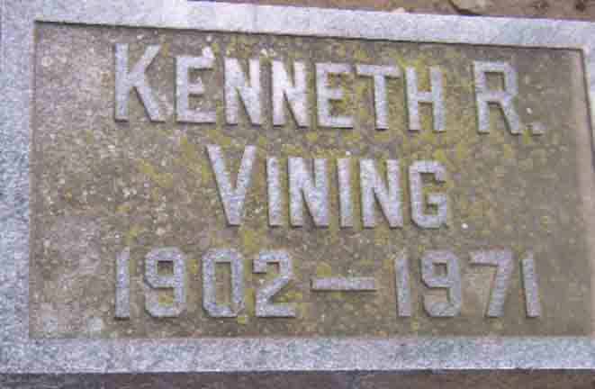 Gravestone for Kenneth R. Vining, in Woodland Cemetery, Jackson, Jackson County, Michigan (from Find A Grave):