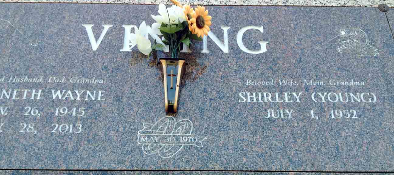 Headstone for Kenneth Wayne Vining and Shirley LoDean (Young) Vining, in Maple Hill Cemetery, Kansas City, Wyandotte County, Kansas (from Find A Grave):