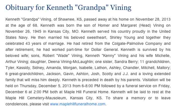 Obituary for Kenneth Wayne Vining: