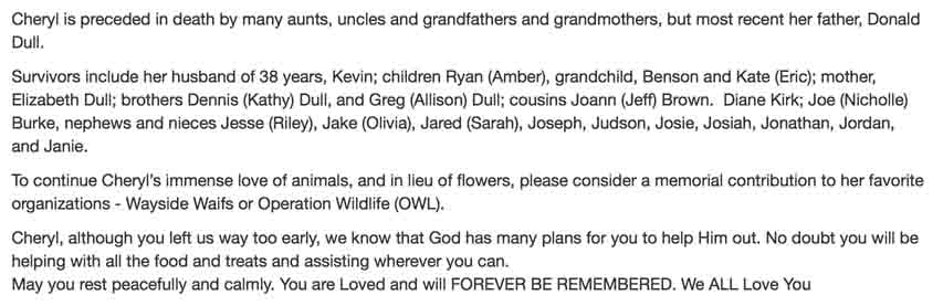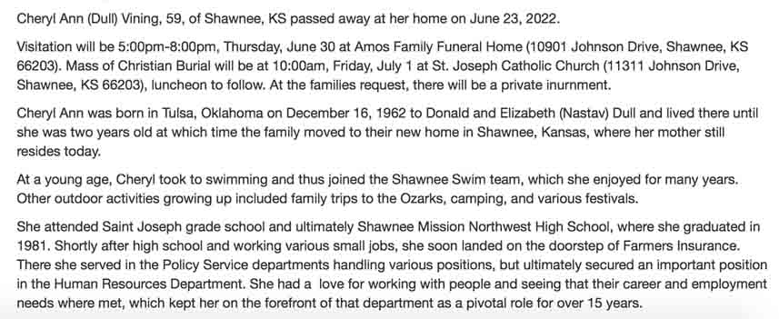 Obituary for Cheryl Ann (Dull) Vining (source Amos Family Funeral Home website):