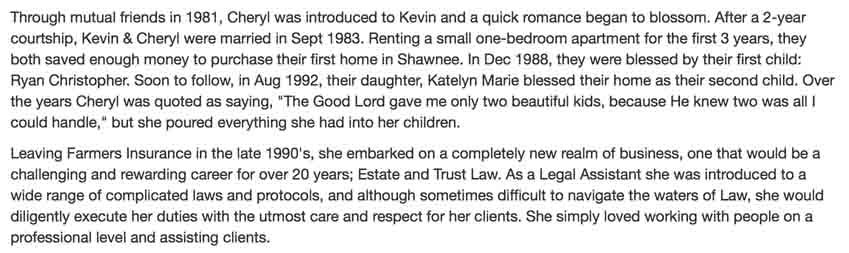 Documentation for Kevin Vining - Cheryl Ann Dull