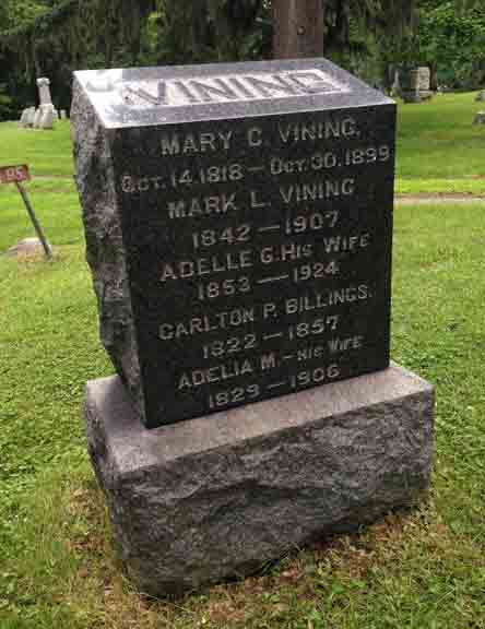 Headstone for Mark Lyman Vining and family, in Highland Cemetery, Ypsilanti, Washtenaw, Michigan (from Find A Grave):