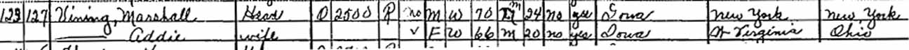 | Vera Francis Vining | 12 | 22 | not living in this household | | |