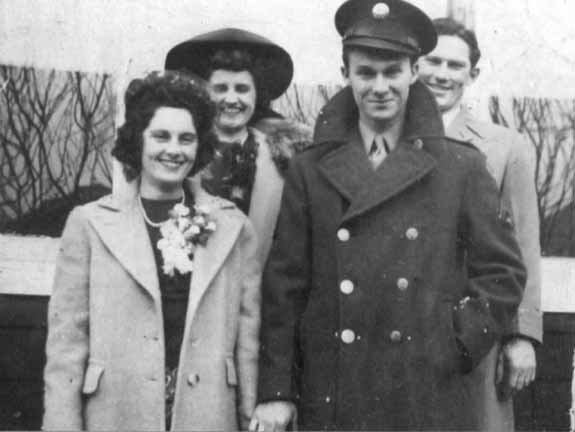 Wedding day (10 January 1943) in Trenton, New Jersey: front row: Jean Marie (Breen) Vining and Melvin Howard Vining; back row: Virginia Haggerty (maid of honor) and Hugh Breen (best man):