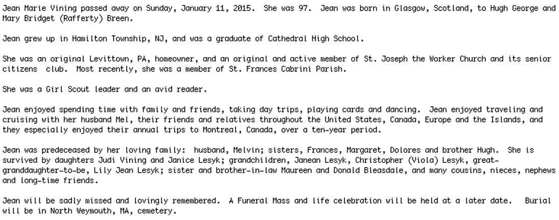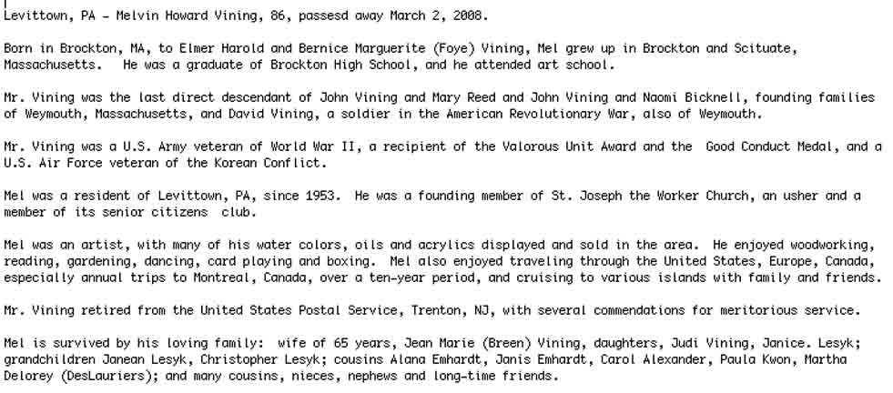 Documentation for Melvin Howard Vining - Bernice Marguerite Foye