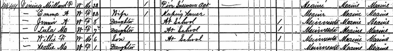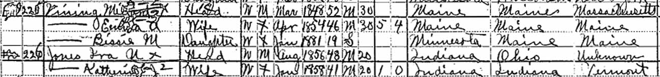 | Hattie M. Vining | 1 | ? | not living in this household [see note below] | ? | ? | |