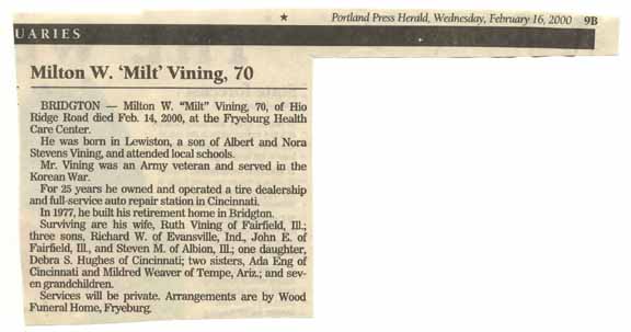 Obituary for Milton Wayne Vining: