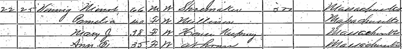 | Hannah Pamelia Vining | ? | F 10–15 | 22 | living in separate household | 40 | living in separate household | dead |