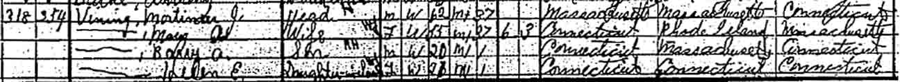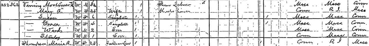 | Mary A. (Thompson) Vining | 25 | ? | 44 | 55 | 65 | ? |