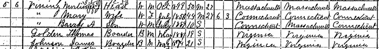 | Susan Celestia Vining | 6 | ? | married and living in separate household | |||
