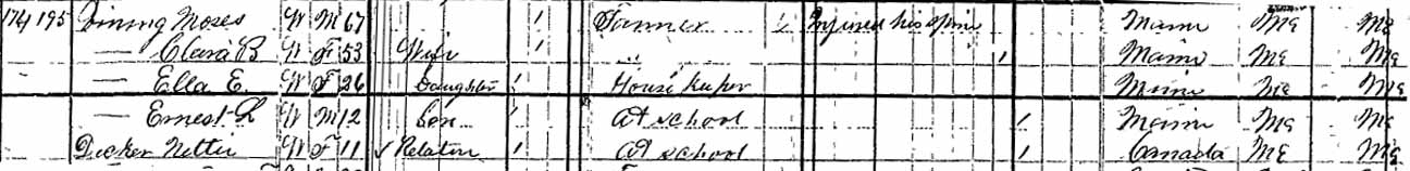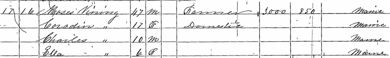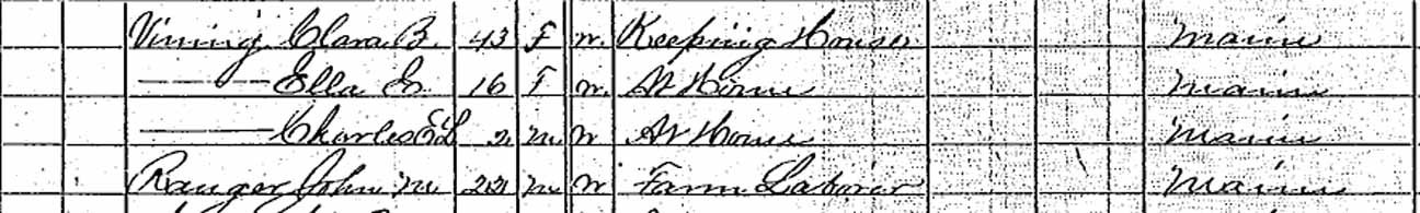 | Ella E. Vining | 6 | 16 | 26 | married and living in separate household | |||