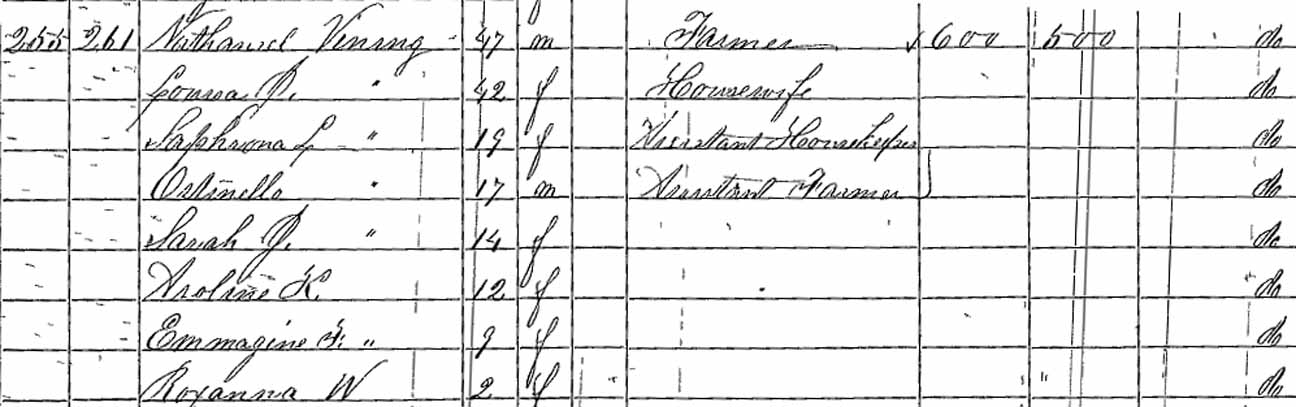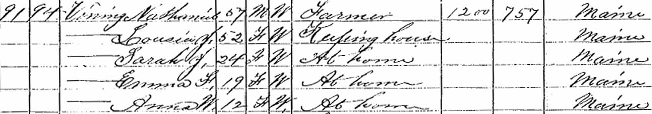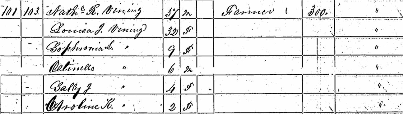| Sophronia Louisa Vining | 9 | 19 | married and living in separate household | | | |