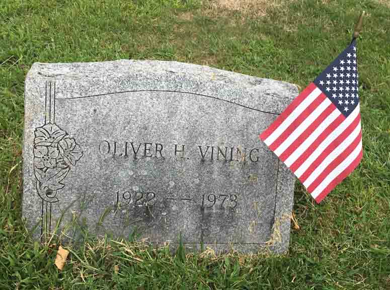Gravestone for Oliver H. Vining, in Mountain Grove Cemetery and Mausoleum, Bridgeport, Fairfield County, Connecticut (from Find A Grave):