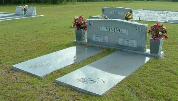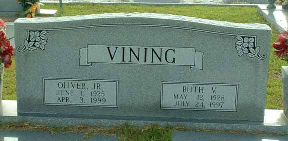 Cemetery lot and headstone for Oliver Vining Jr. and Ruth Latrell (Vaughn) Vining, in Stokesville Baptist Church Cemetery, Stokesville, Georgia:
