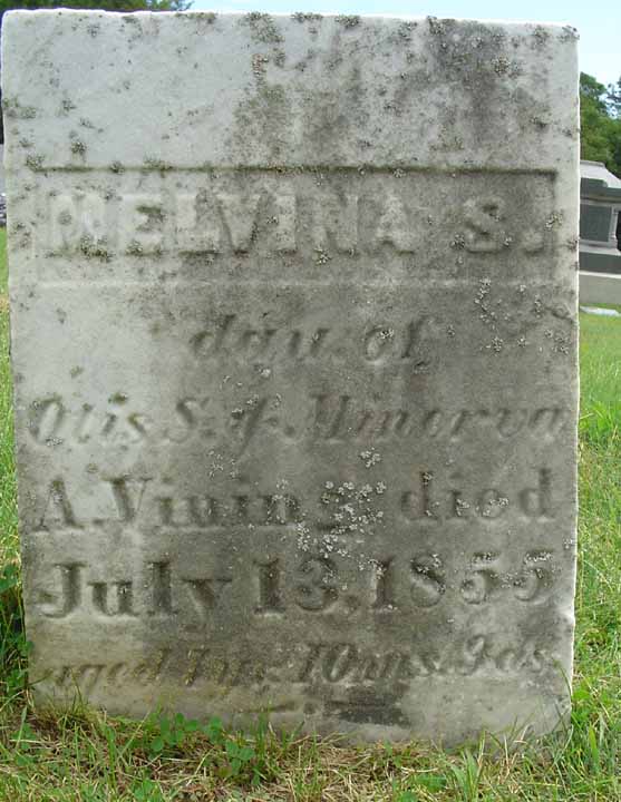Gravestones for Melvina S. Vining and Edwin Wilson Vining, children of Otis S. Vining and Minerva A. (Storer) Vining, in Hillside Cemetery, Lisbon, Maine: