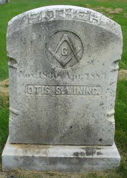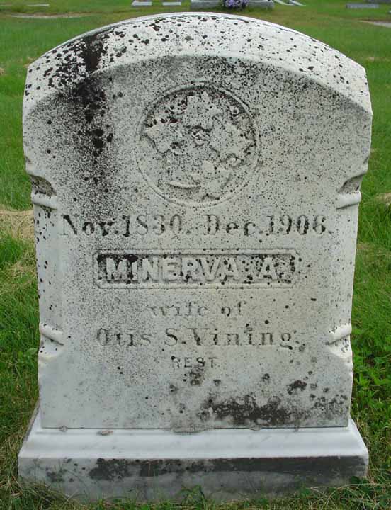 Gravestones for Otis S. Vining and Minerva A. Storer, in Hillside Cemetery, Lisbon, Maine.