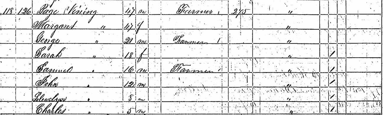 | George W. Vining | M under 5 | M 10–15 | 21 | 32 | married and living in separate household | ||