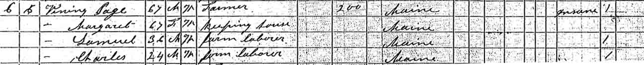 The “Early Vital Records / 1741–1836” of Lewiston, Maine, reported the birth date of Page Vining to be “March 29th 1803”, but the headstone that Page shares with his wife gives the date as “Mar. 28, 1803.” However, both of these sources are from well after the date in question. Research is needed to determine the correct date.Census Data