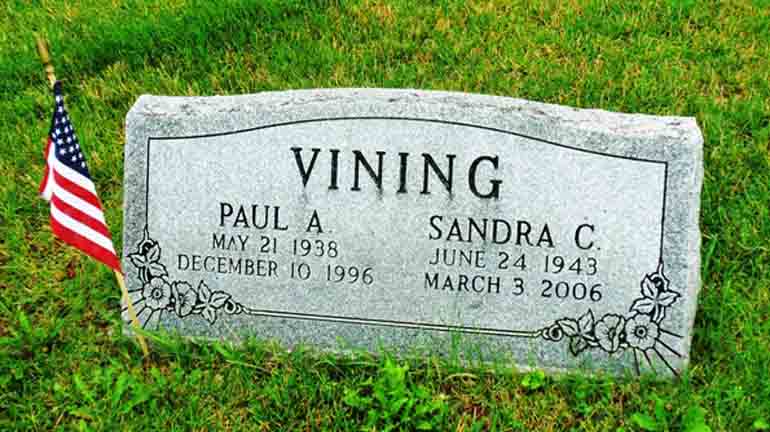 Headstone for Paul Allen Vining and Sandra C. Smith, in Strongsville Cemetery, Strongsville, Cuyahoga County, Ohio (from Find A Grave):