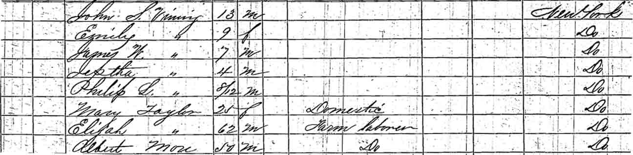 | Jeptha Peter Vining | 4 | 14 | not living in this household | |||