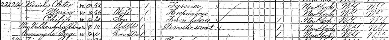 A Carolyn Vining was reported to be a member of this household by Dorothea Vining Barnes in her 1980 book The Vining Family. Based on that book, she is included here but her presence in the census record has not been found yet.Census Data