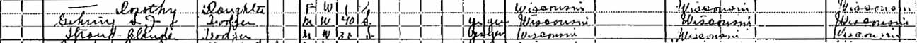 1920 Hartford, Washington County, Wisconsin - dwelling 227, flat 21, family 262. Also living in this household in 1920 were lodgers S. J. Gehring (40 y., b. Wisconsin) and Claude Stroud (30 y., b. Wisconsin).: