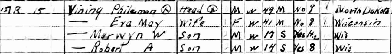 | Dorothy Mae Vining | 1 | 11 | [living? in separate household] |