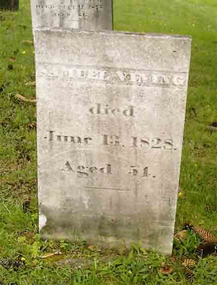 Gravestones for Samuel Vining and Rhoda (Pettibone) Vining, in Southwick Cemetery, Southwick, Hampden County, Massachusetts (from Find A Grave):
