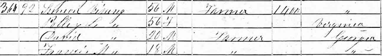 | Washington Franklin Vining | ? | 18 | married and living in separate household | |||