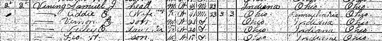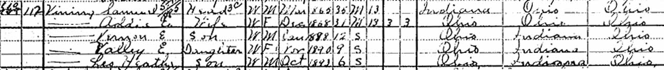 | Leo Heath Vining | 6 | 1[7?] | married and living in separate household |
