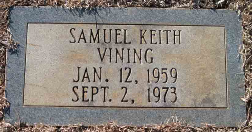 Gravestone for Samuel Keith Vining, son of Samuel Therion Vining, in Noah's Ark Church Cemetery, Jonesboro, Clayton County, Georgia (from Find A Grave):