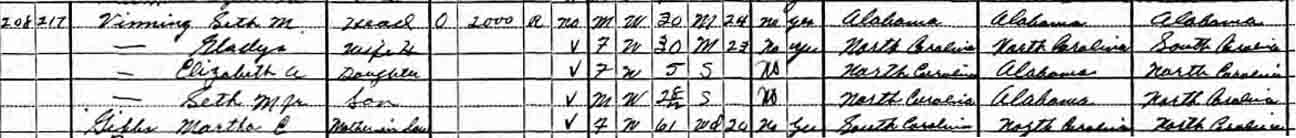 Tryon Township, Polk County, North Carolina - dwelling 208, family 217: